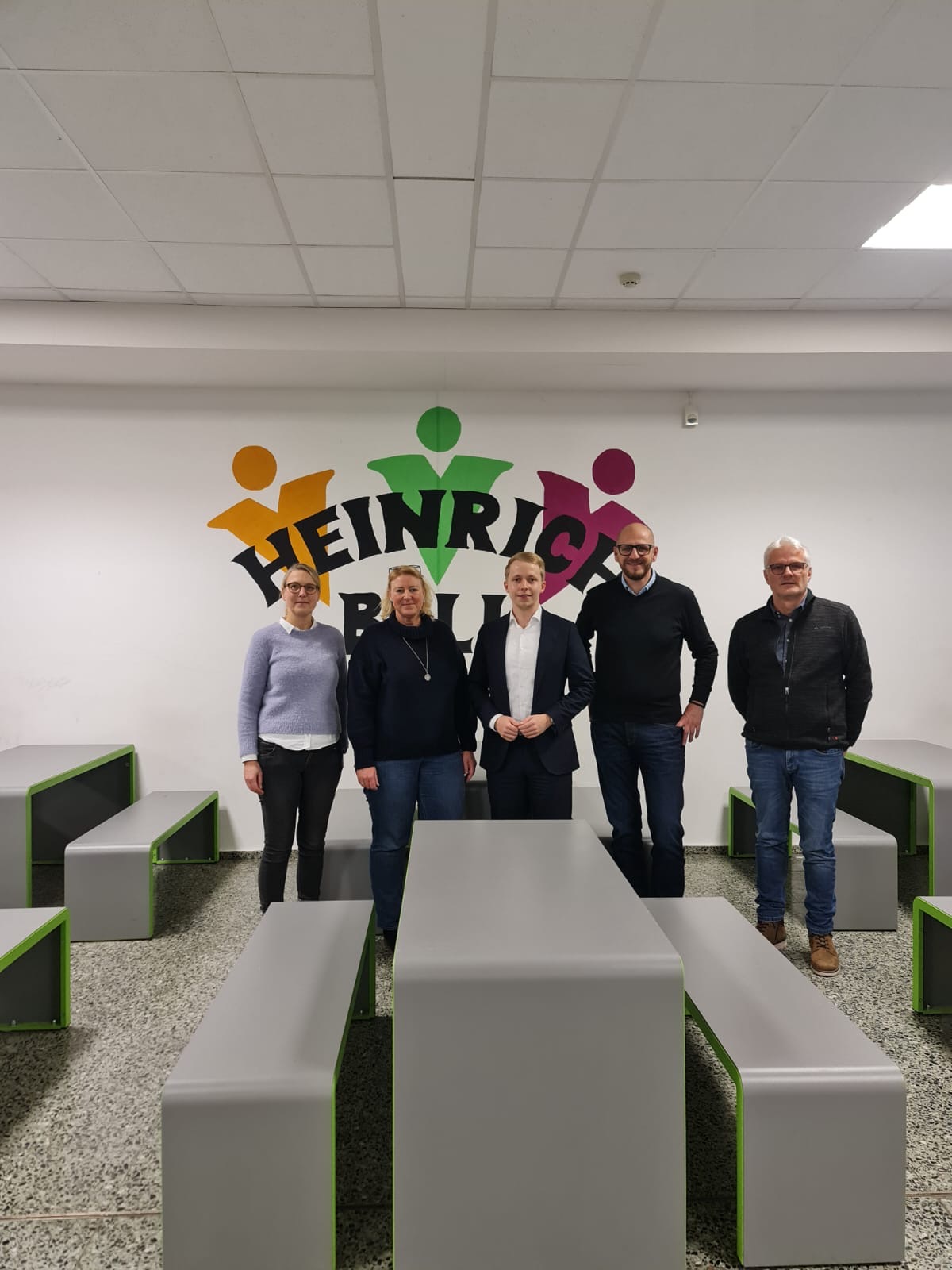 Schuldezernent Jannik Marquart war heute im Rahmen der Schulbereisung zu einem sehr konstruktiven Gespräch an der Heinrich-Böll-Schule. Gemeinsam mit seinem Team vom Amt 65 wurden im Rahmen einer Begehung die baulichen Bedarfe von Seiten der Schulleitung der HBS dargelegt.