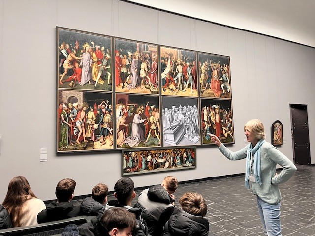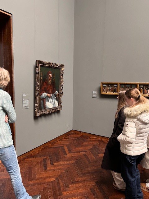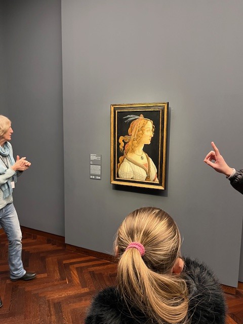 Im Städel Museum gab es dann eine Führung durch die Ausstellung „Alte Meister“. Die ausgestellten Werke stammen aus der Zeit zwischen 1300 und 1800 und zeigen viele Bezüge zu den Themen des Religionsunterrichts. Höhepunkte waren dabei Jan van Eycks Lucca-Madonna, Hans Holbeins Darstellung der Passion und Auferstehung Christi auf dem Flügel des Frankfurter Dominikaneraltars, Raphaels Bildnis des Papstes Julius II. und Sandro Botticellis Weibliches Idealbildnis (Bildnis der Simonetta Vespucci als Nymphe).