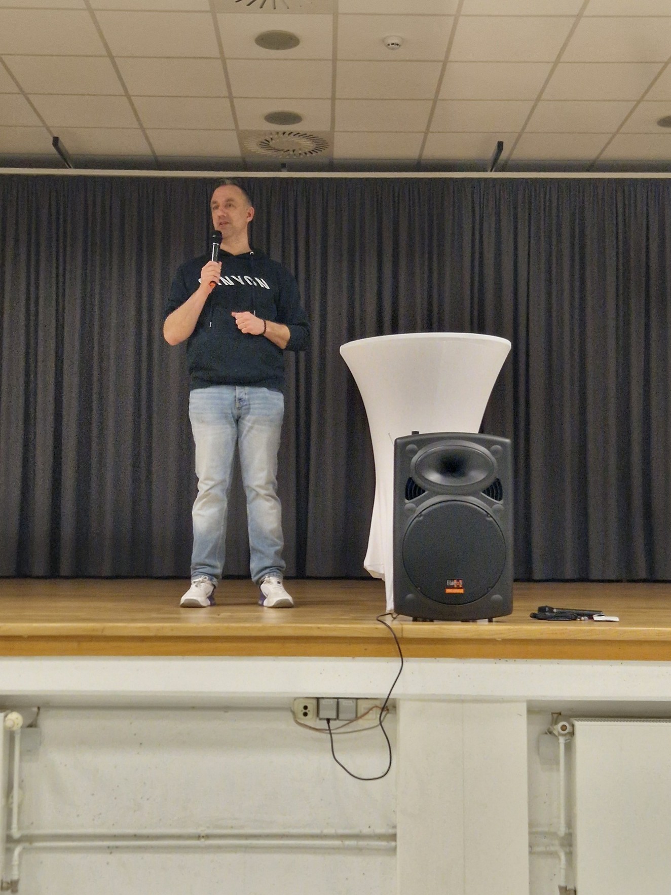 Als „lustigster Jugendexperte Deutschlands“ unterhielt Matthias Jung interessierte Eltern und Lehrkräfte am 24.02.2026 in der Aula der Heinrich-Böll-Schule mit seinem Programm „Am Ende der Geduld ist noch viel Pubertät übrig“.