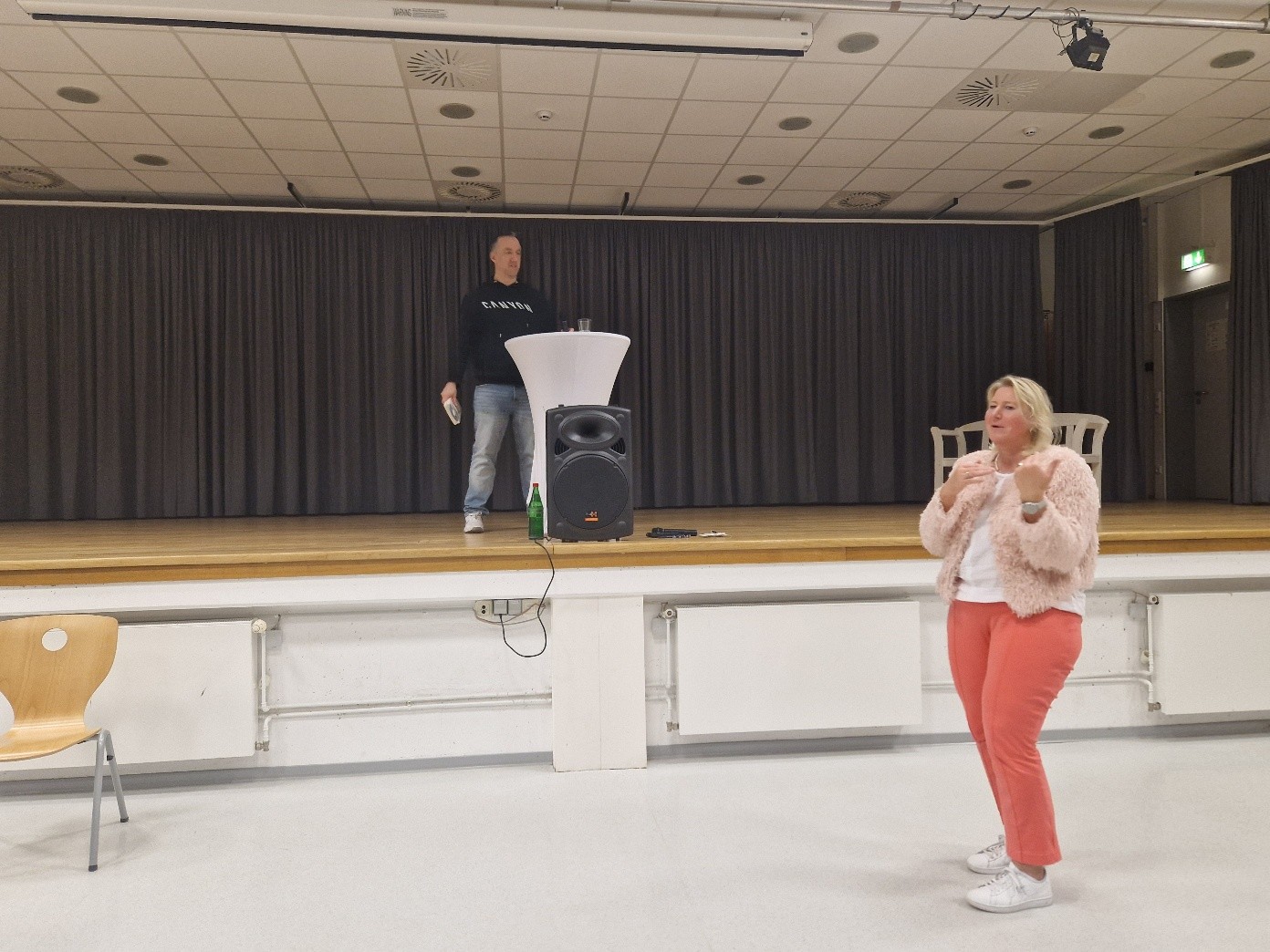 Die Eltern und Lehrkräfte fanden sich in vielen der Situationen wieder, die Herr Jung auf eine einmalig humoristische Weise darbot. Dabei ließ er auch immer wieder eigene Erfahrungen aus seinem Alltag als Vater eines Teenagers einfließen, die das Publikum zum Schmunzeln anregten.