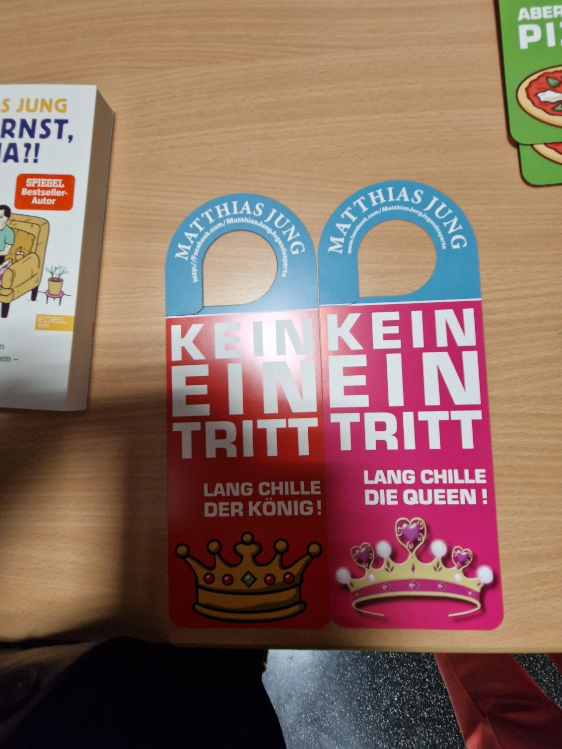 Am Ende präsentierte Herr Jung seine Bücher und thematisch passenden Türschilder, die die Eltern als Geschenk für ihre Liebsten mitnehmen konnten.