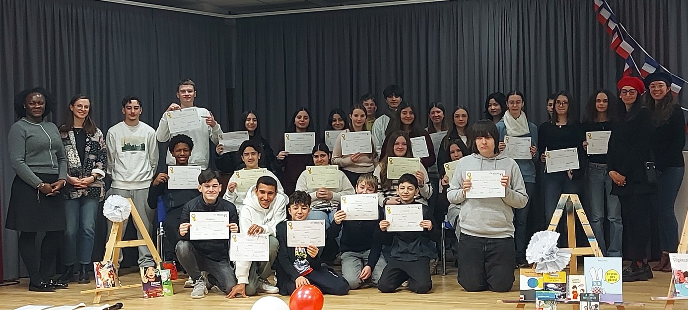 Der Fachbereich Französisch gratuliert allen Gewinnerinnen und Gewinnern von Herzen und bedankt sich für das Engagement aller Teilnehmerinnen und Teilnehmer! Unsere Schulsiegerin Gizem Tunc (9g) wird unsere Schule beim regionalen Vorlesewettbewerb vertreten und wir drücken ihr ganz fest die Daumen!