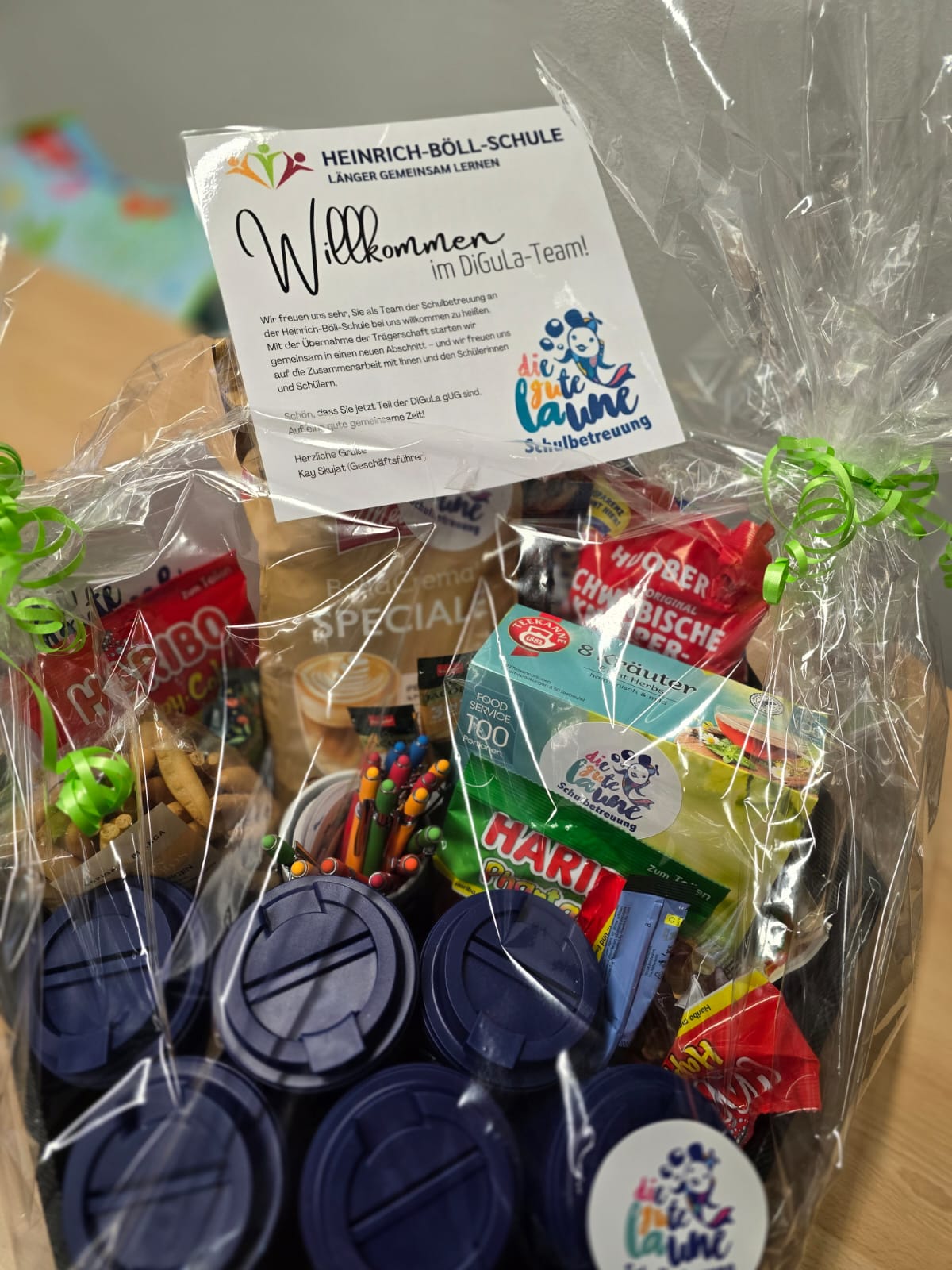 Zum Auftakt wurde das bestehende Team mit einem Willkommenskorb begrüßt – ein Zeichen der Wertschätzung für ein Team, das der Schulbetreuung weiterhin treu bleibt und diesen Übergang aktiv mitgestaltet.