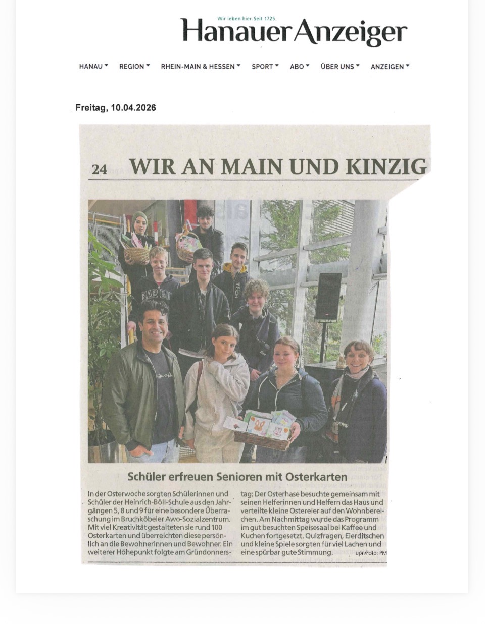 Schüler erfreuen Senioren mit Osterkarten