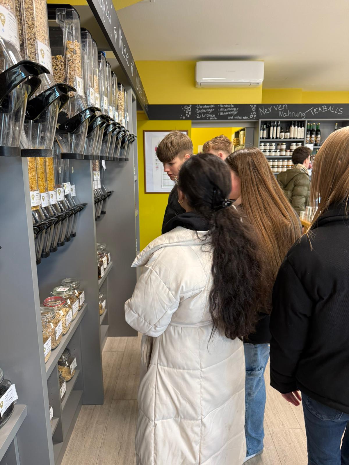 Zum Abschluss des Schuljahres besuchte der Kurs von Herrn Cevik und Frau Kalweit einen Unverpackt-Laden in Hanau. Ziel dieses Ausflugs war es, das Bewusstsein der Schülerinnen und Schüler für nachhaltige Alternativen zu stärken und sie für einen bewussteren Umgang mit Konsum und Verpackungen zu sensibilisieren.