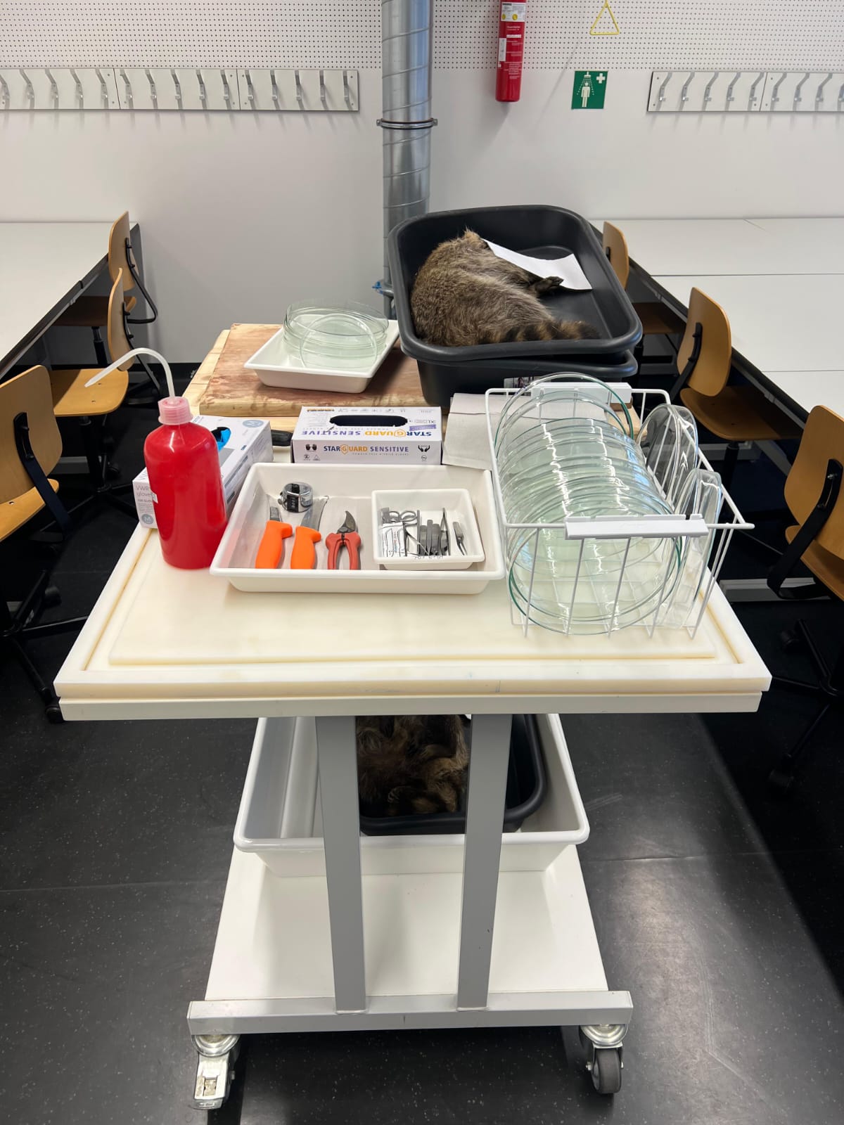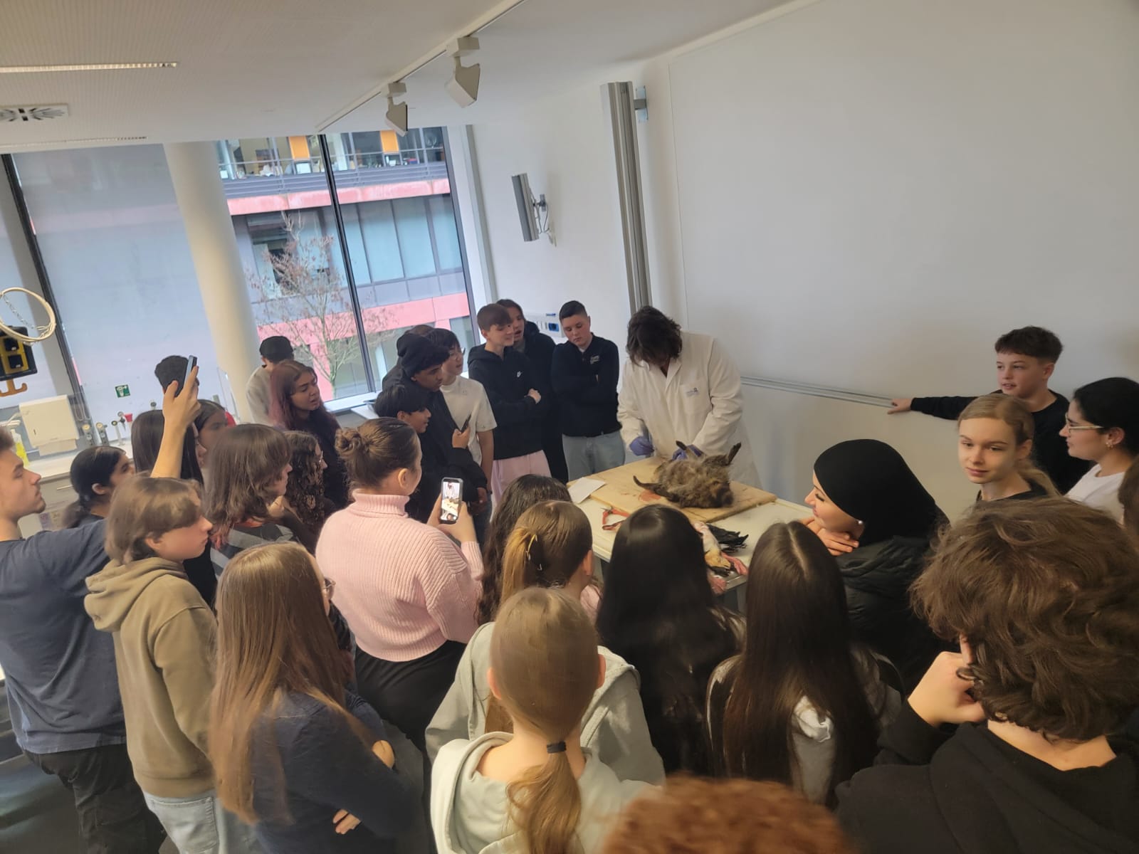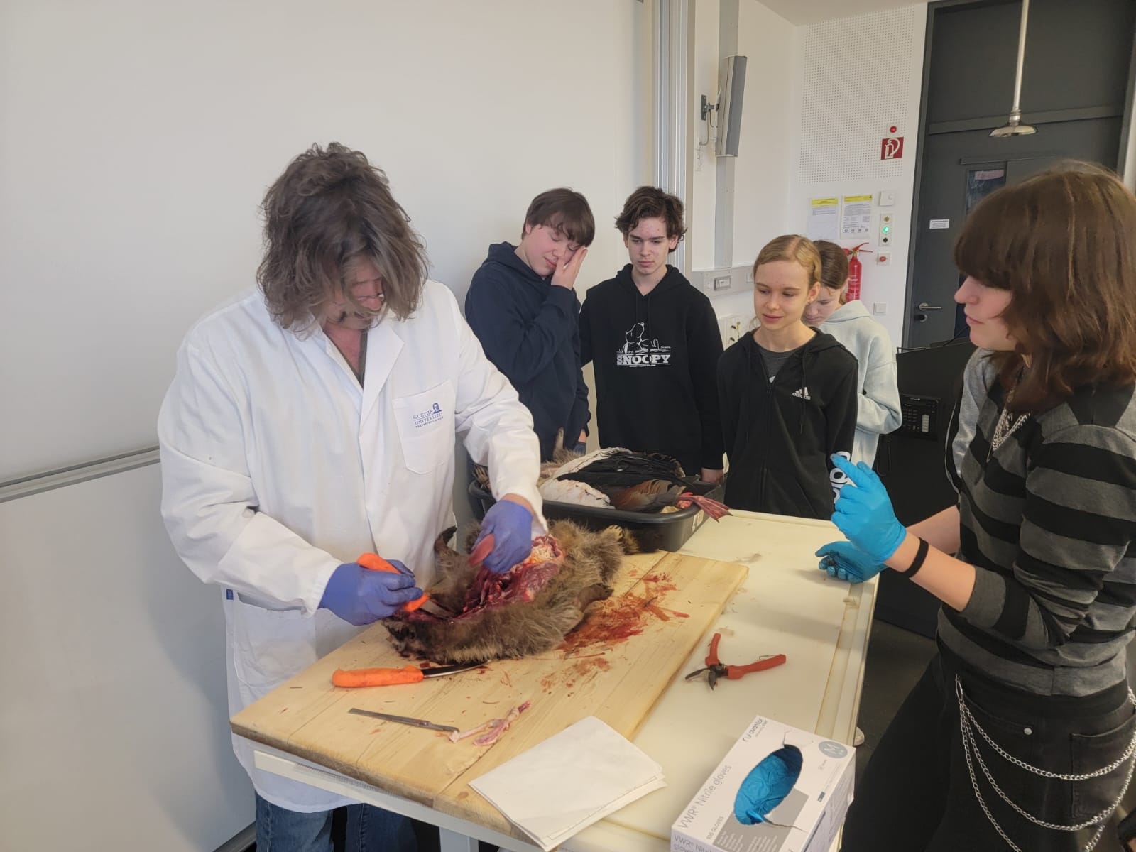 Nach einem interessanten Vortrag vom Dekan Herrn Klimpel folgte ein echtes Highlight: eine Live-Sektion eines Waschbären und einer Nielgans, bei der wir gemeinsam mit Herrn Dr. Peter verschiedene Parasiten genauer betrachten konnten.