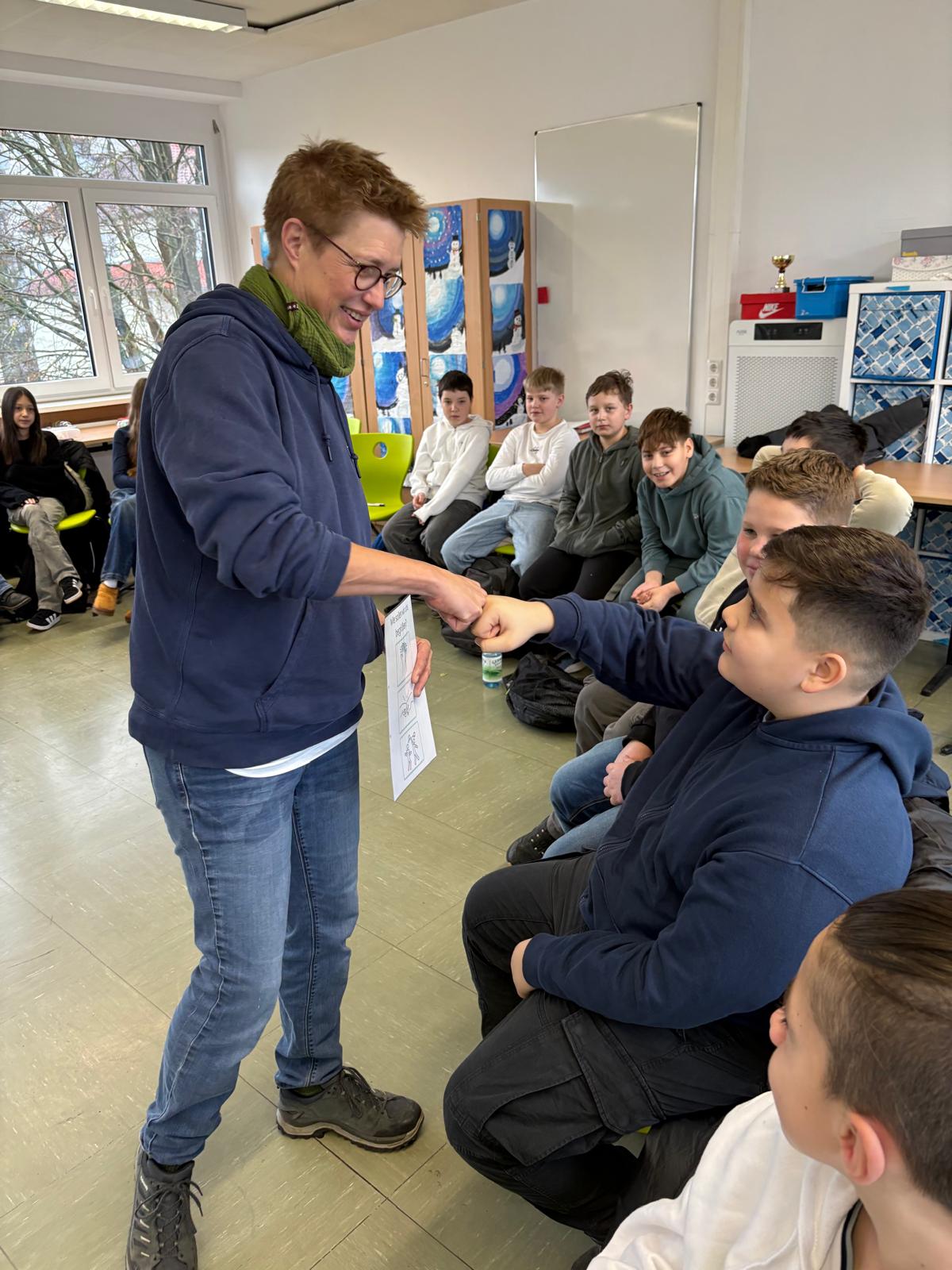 Es wurden auch vor den Tricks im Zusammenhang mit der Weitergabe von Falschgeld gewarnt. Am Ende durften die Schüler die Frage nach dem durchschnittlichen Bargeldbestand im Portemonnaie beantworten, geschätzt wurden 250 Euro, tatsächlich sind es in Deutschland 103 Euro