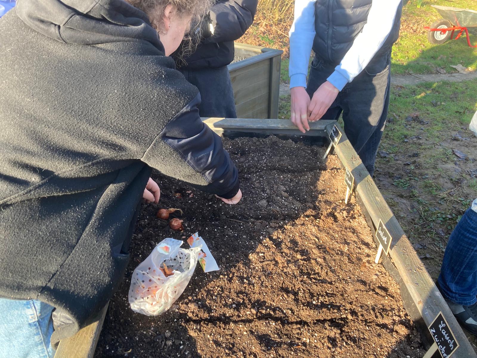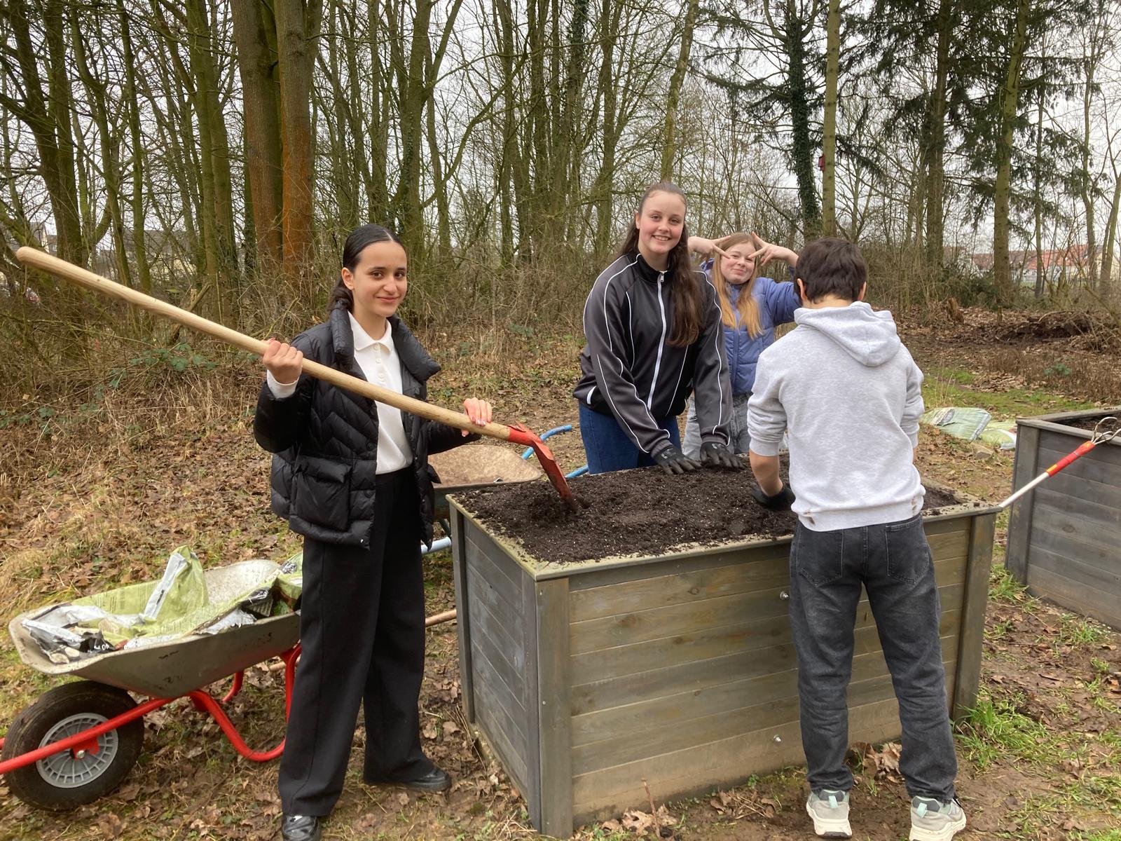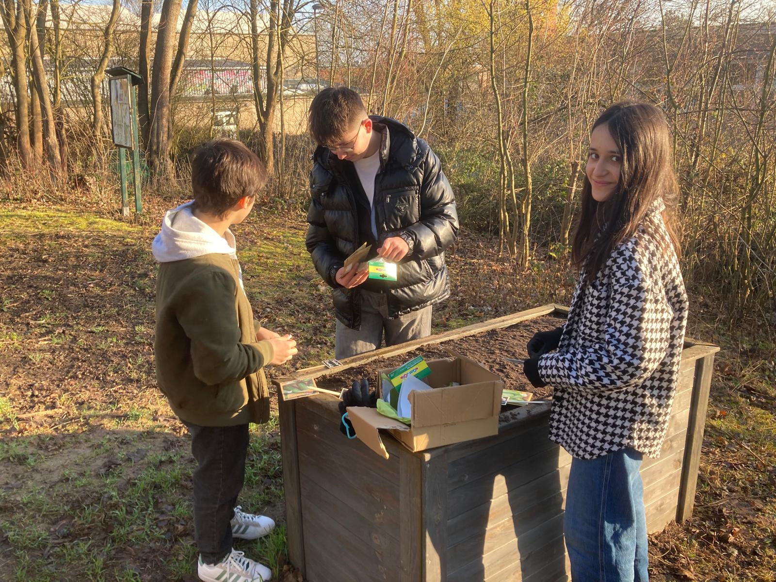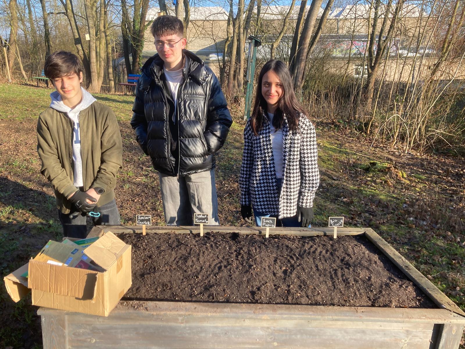 Wir haben die im letzten Jahr gebauten Hochbeete befüllt und die ersten Pflanzen gesät.