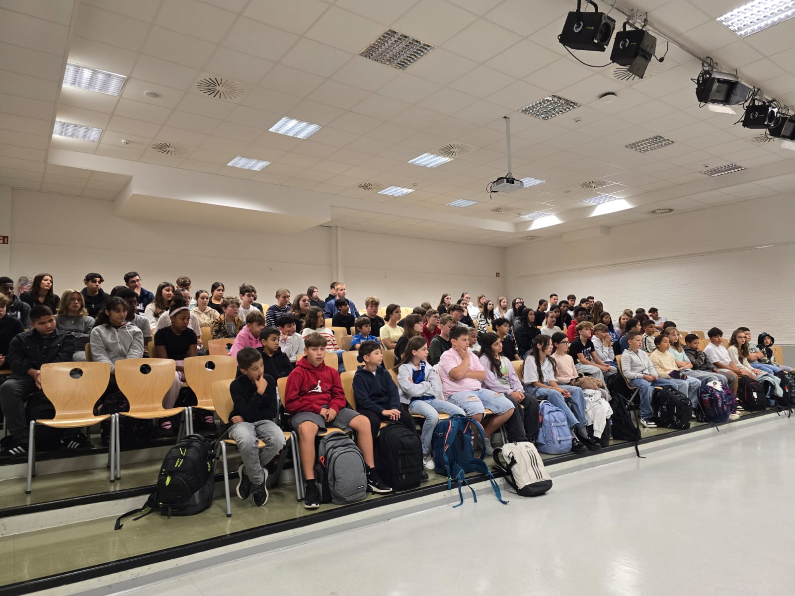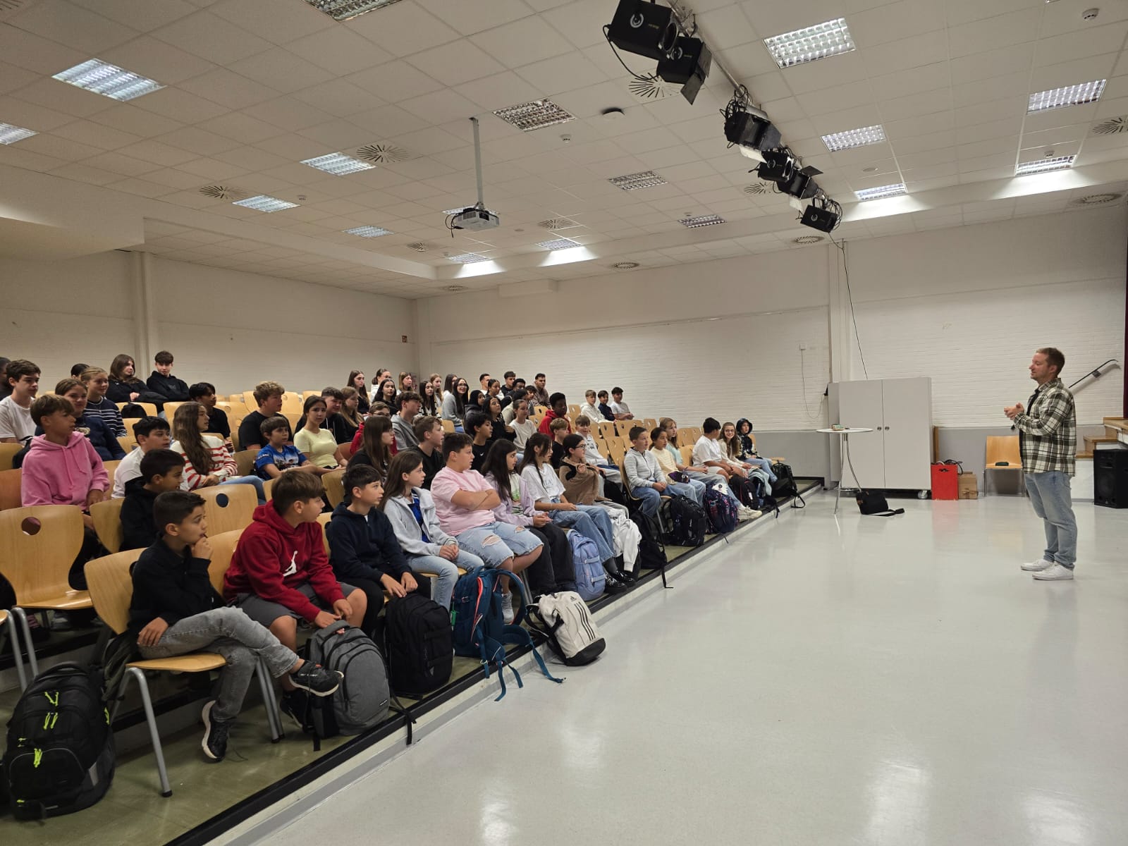Eltern aus den Jahrgangsstufen 5-7 kamen am Dienstag, dem 2. September 2025 in der Aula der HBS zusammen, um im Rahmen der Suchtprävention einen Vortrag des Sozial- und Medienpädagogen Thomas Graf zu hören und darüber ins Gespräch zu kommen.