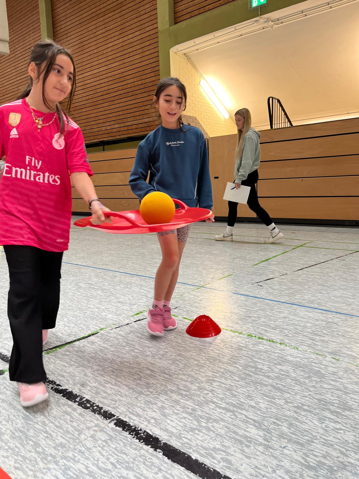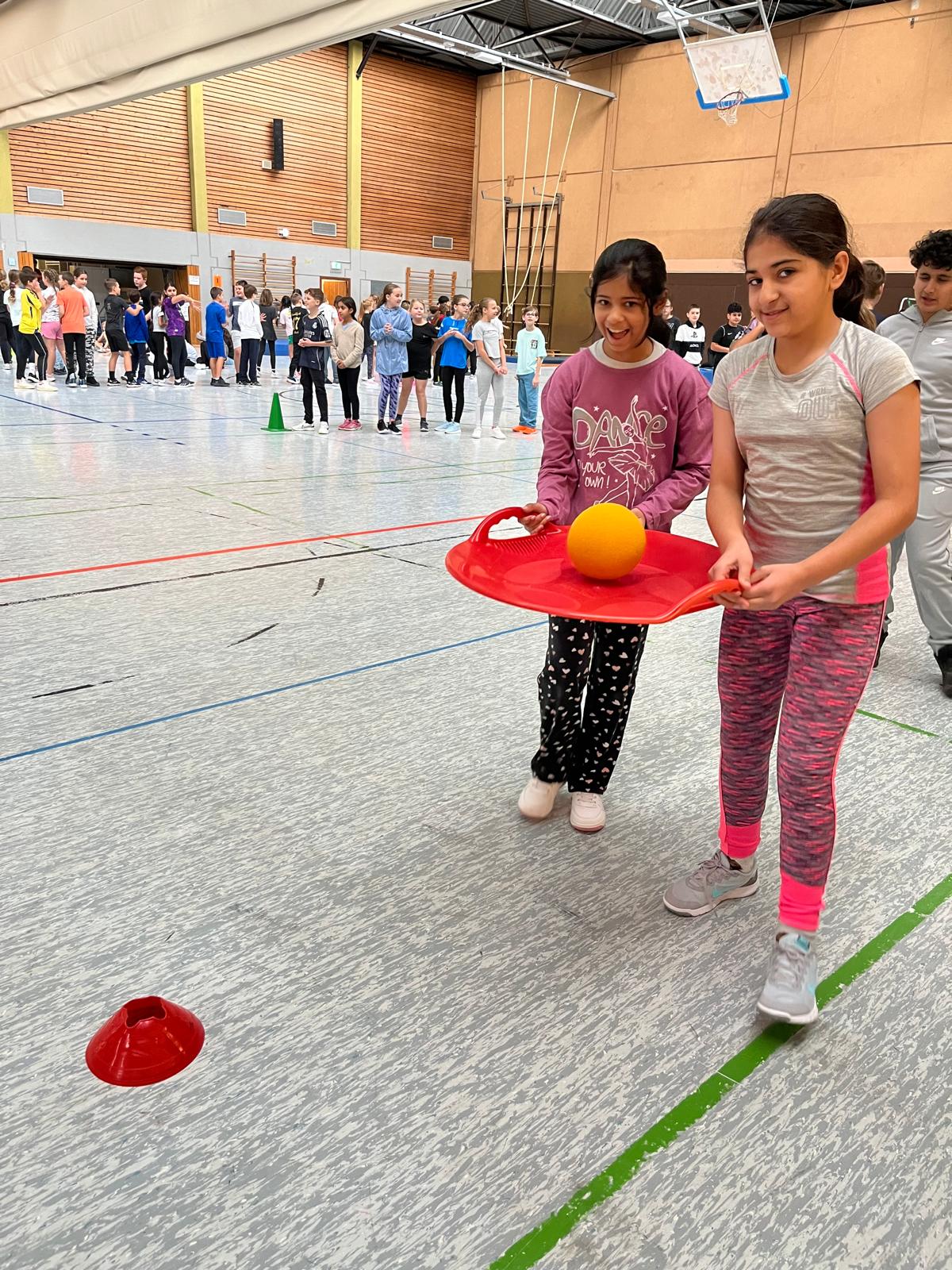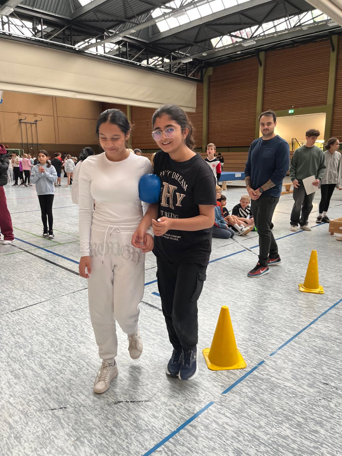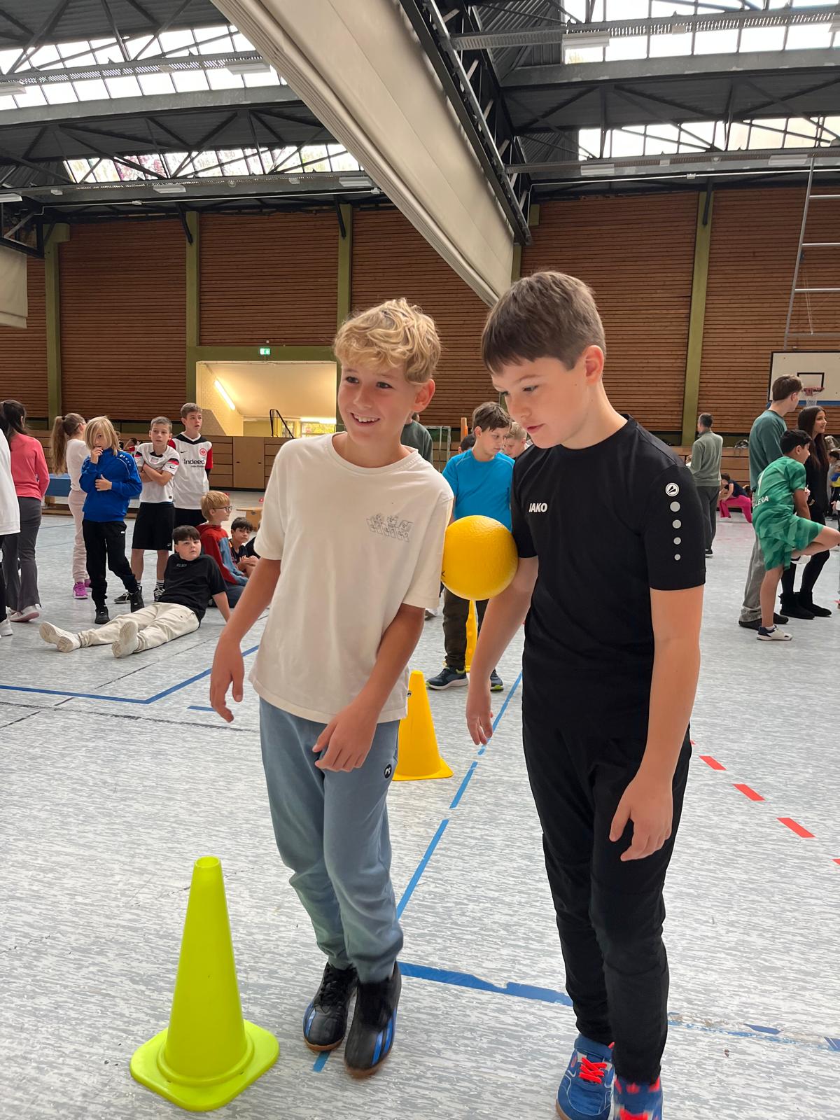 In der Halle waren in den frühen Morgenstunden zehn abwechslungsreiche und für die Kinder spannende Spiel-, Spaß- und Sportstationen aufgebaut worden, an denen sie nicht nur mit Blick auf ihr sportliches Talent und ihre Geschicklichkeit gefordert wurden. Auch -und vor allem- mussten sie ihren Teamgeist und ihre Kooperationsfähigkeit unter Beweis stellen, denn sie nahmen in gemischten Gruppen mit Lernenden beider Schulen am spielerischen Wettbewerb teil.