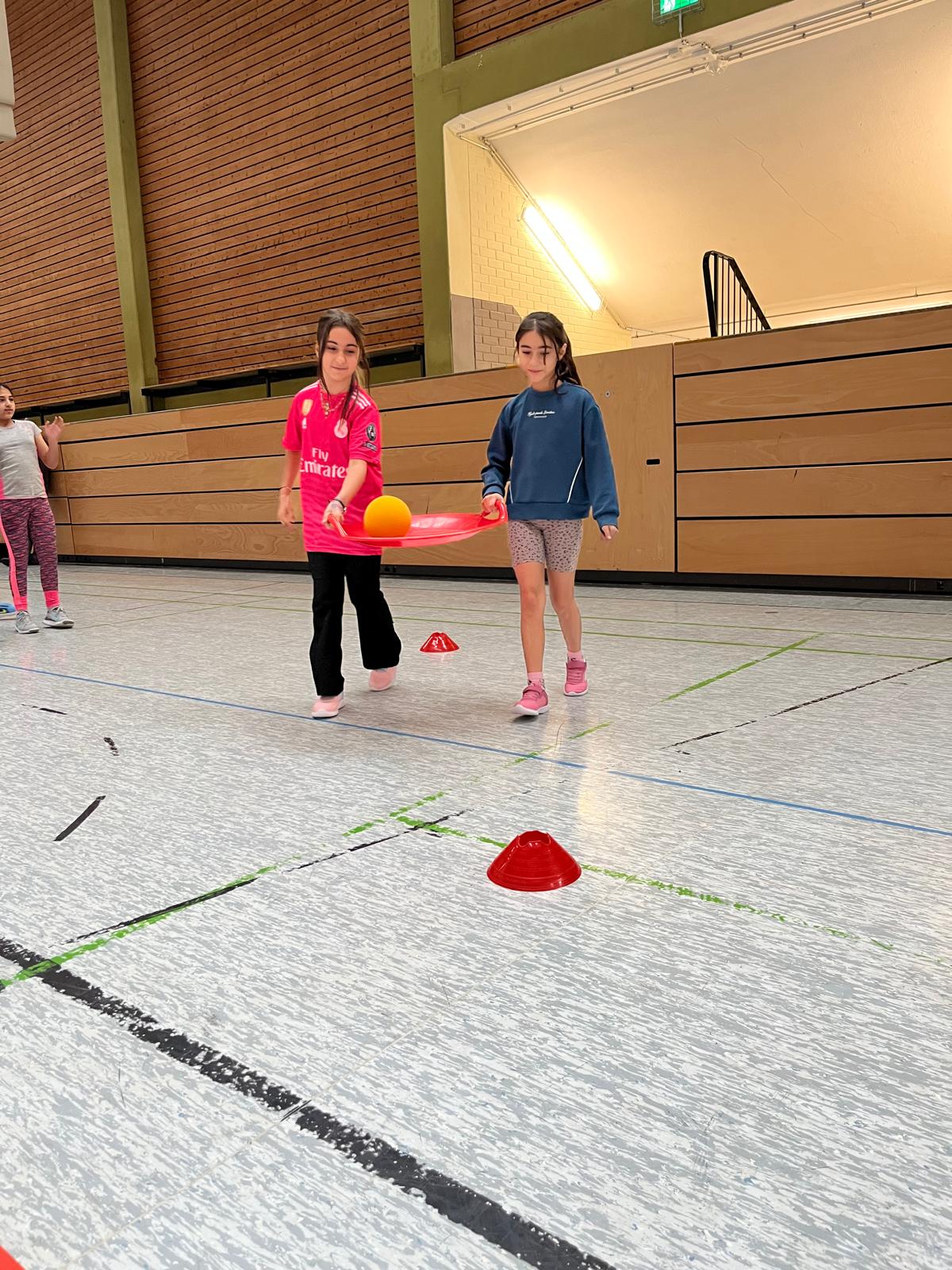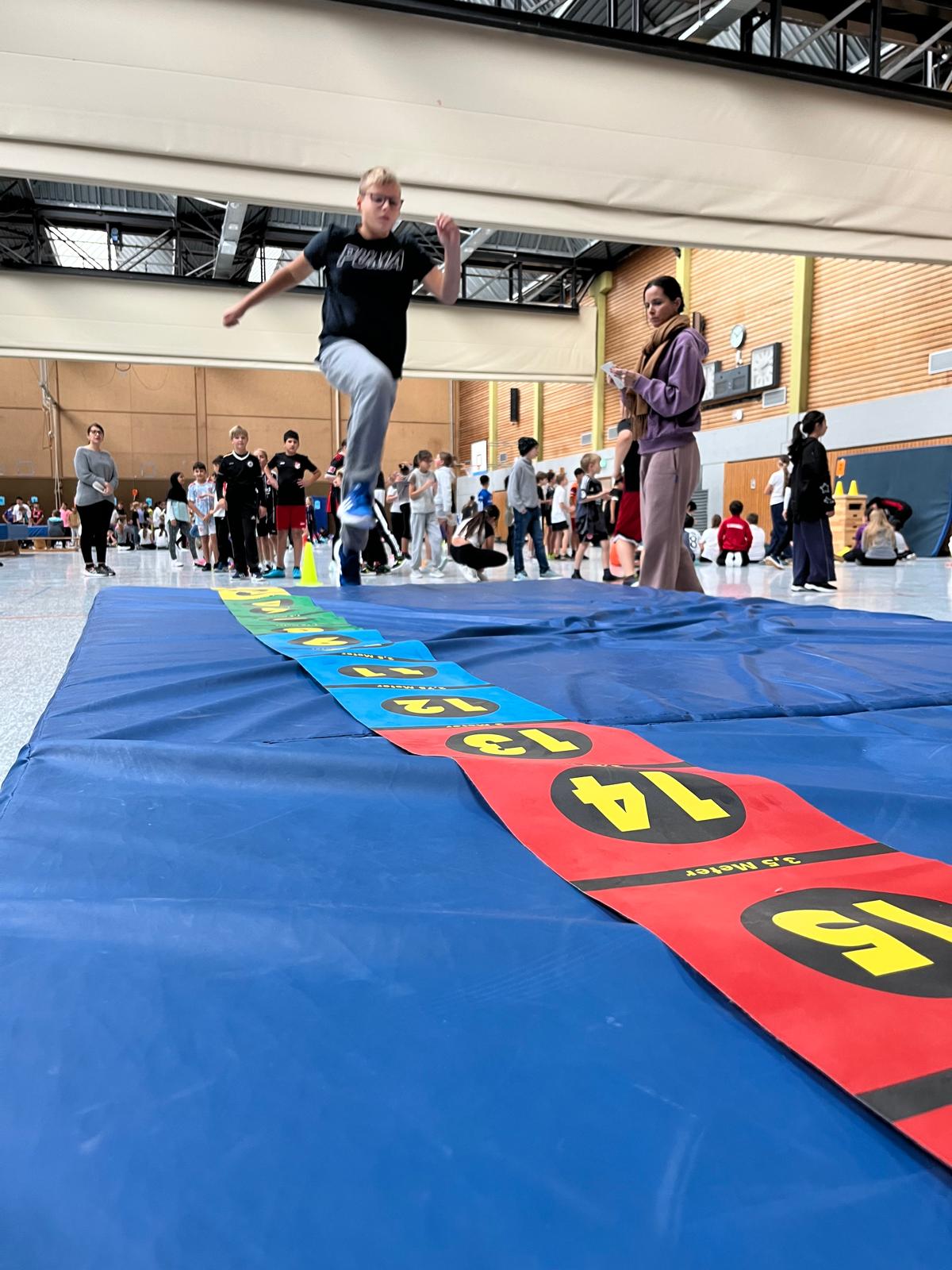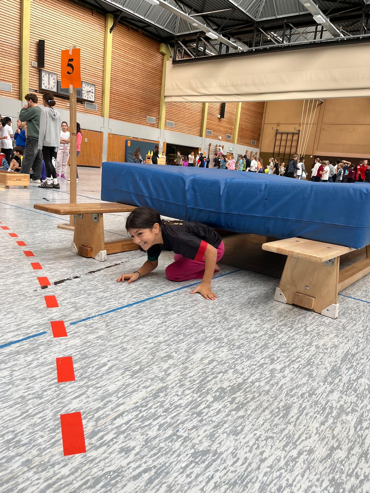 In der Halle waren in den frühen Morgenstunden zehn abwechslungsreiche und für die Kinder spannende Spiel-, Spaß- und Sportstationen aufgebaut worden, an denen sie nicht nur mit Blick auf ihr sportliches Talent und ihre Geschicklichkeit gefordert wurden. Auch -und vor allem- mussten sie ihren Teamgeist und ihre Kooperationsfähigkeit unter Beweis stellen, denn sie nahmen in gemischten Gruppen mit Lernenden beider Schulen am spielerischen Wettbewerb teil.