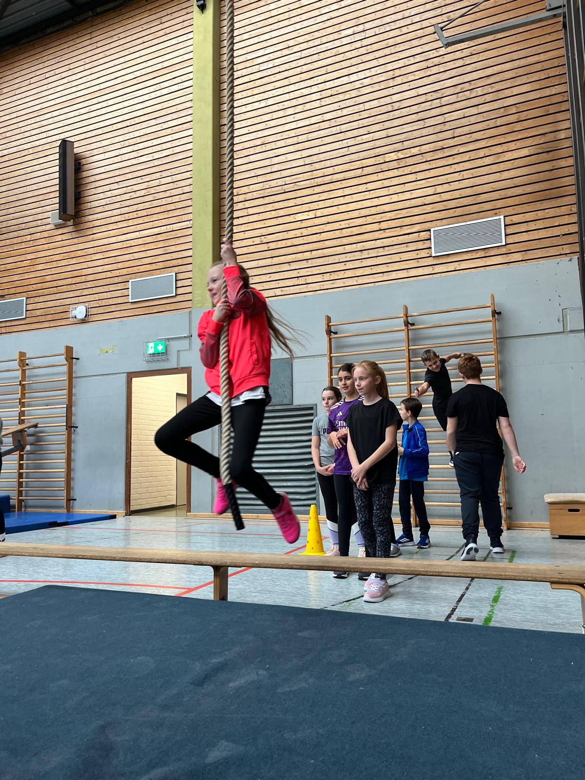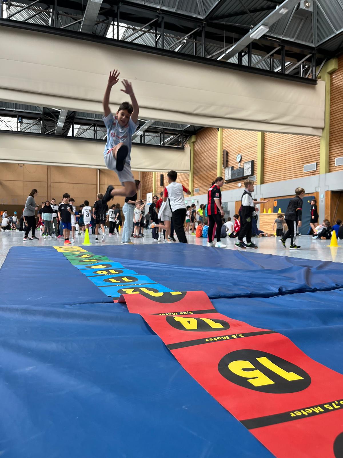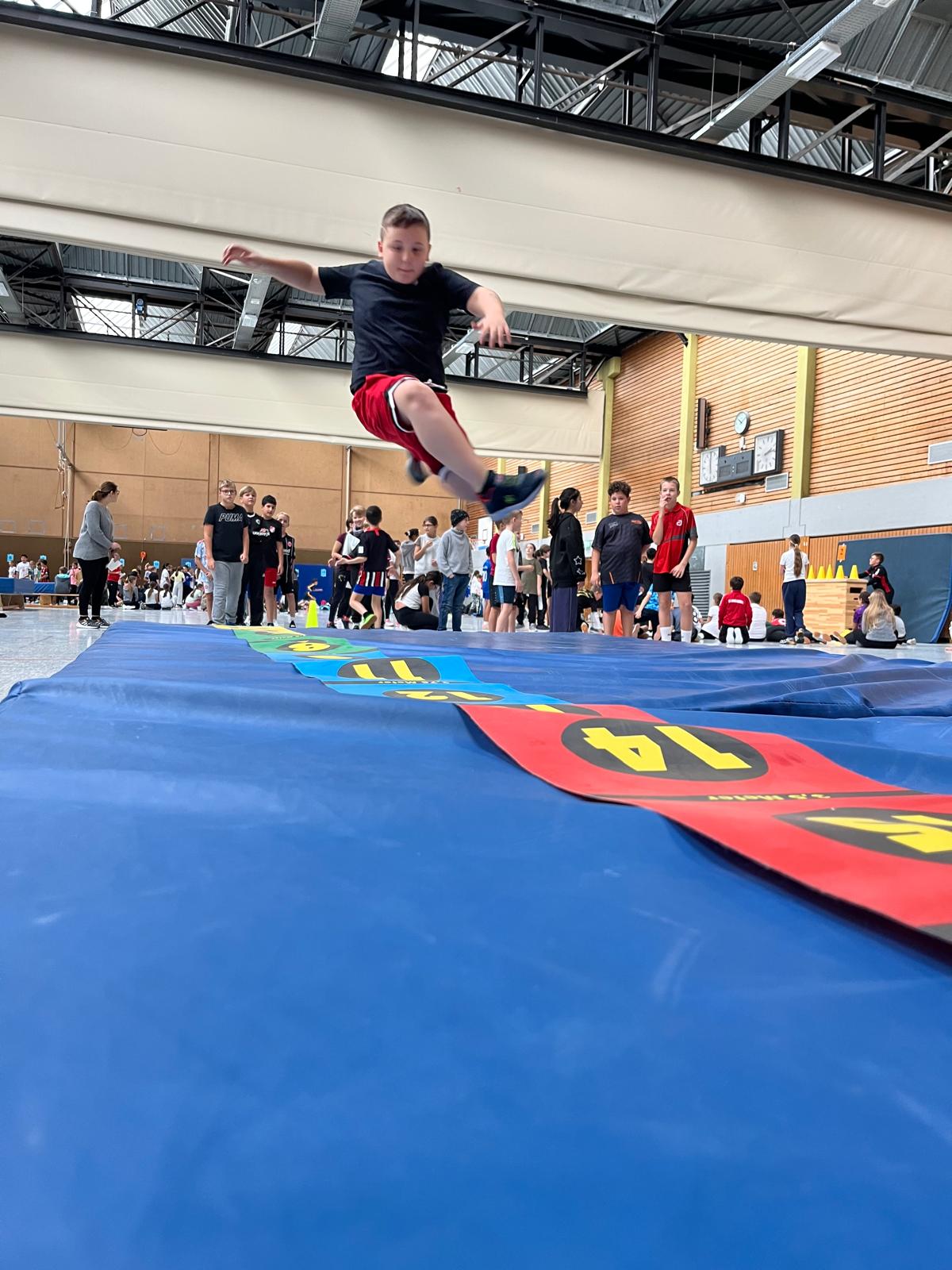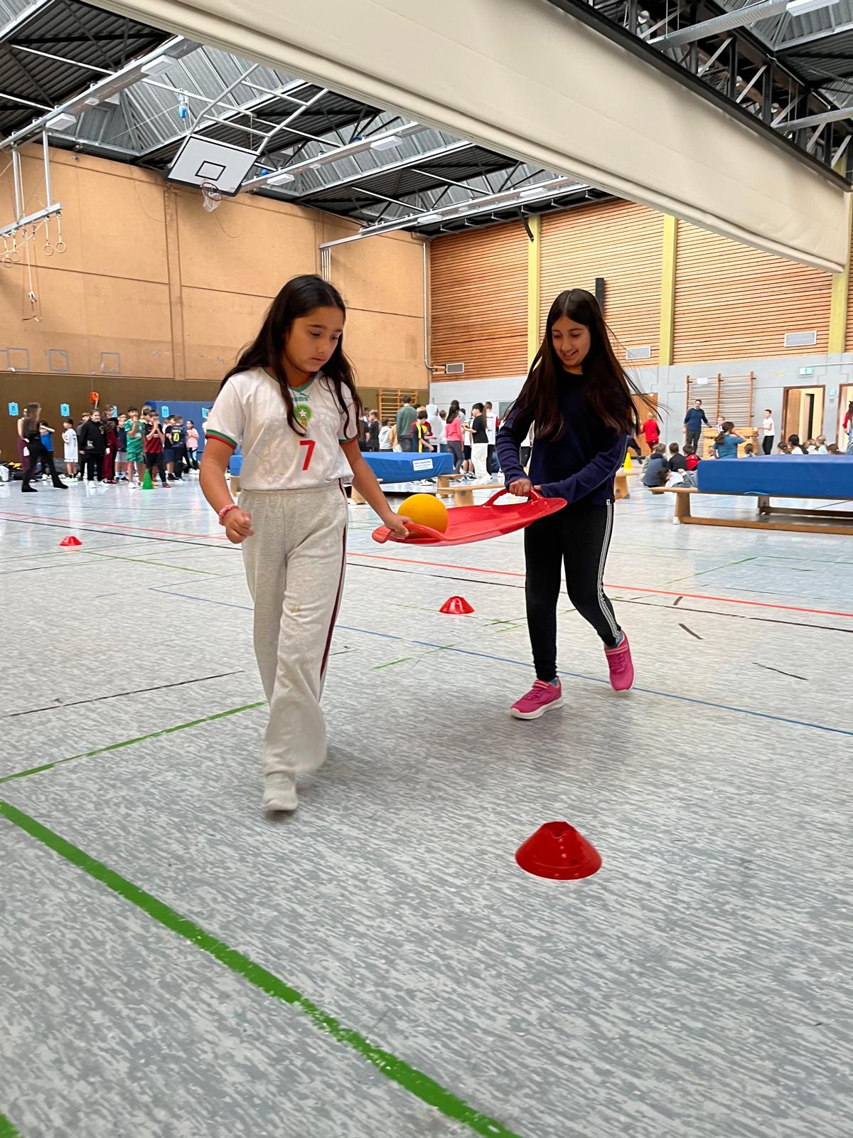 In der Halle waren in den frühen Morgenstunden zehn abwechslungsreiche und für die Kinder spannende Spiel-, Spaß- und Sportstationen aufgebaut worden, an denen sie nicht nur mit Blick auf ihr sportliches Talent und ihre Geschicklichkeit gefordert wurden. Auch -und vor allem- mussten sie ihren Teamgeist und ihre Kooperationsfähigkeit unter Beweis stellen, denn sie nahmen in gemischten Gruppen mit Lernenden beider Schulen am spielerischen Wettbewerb teil.