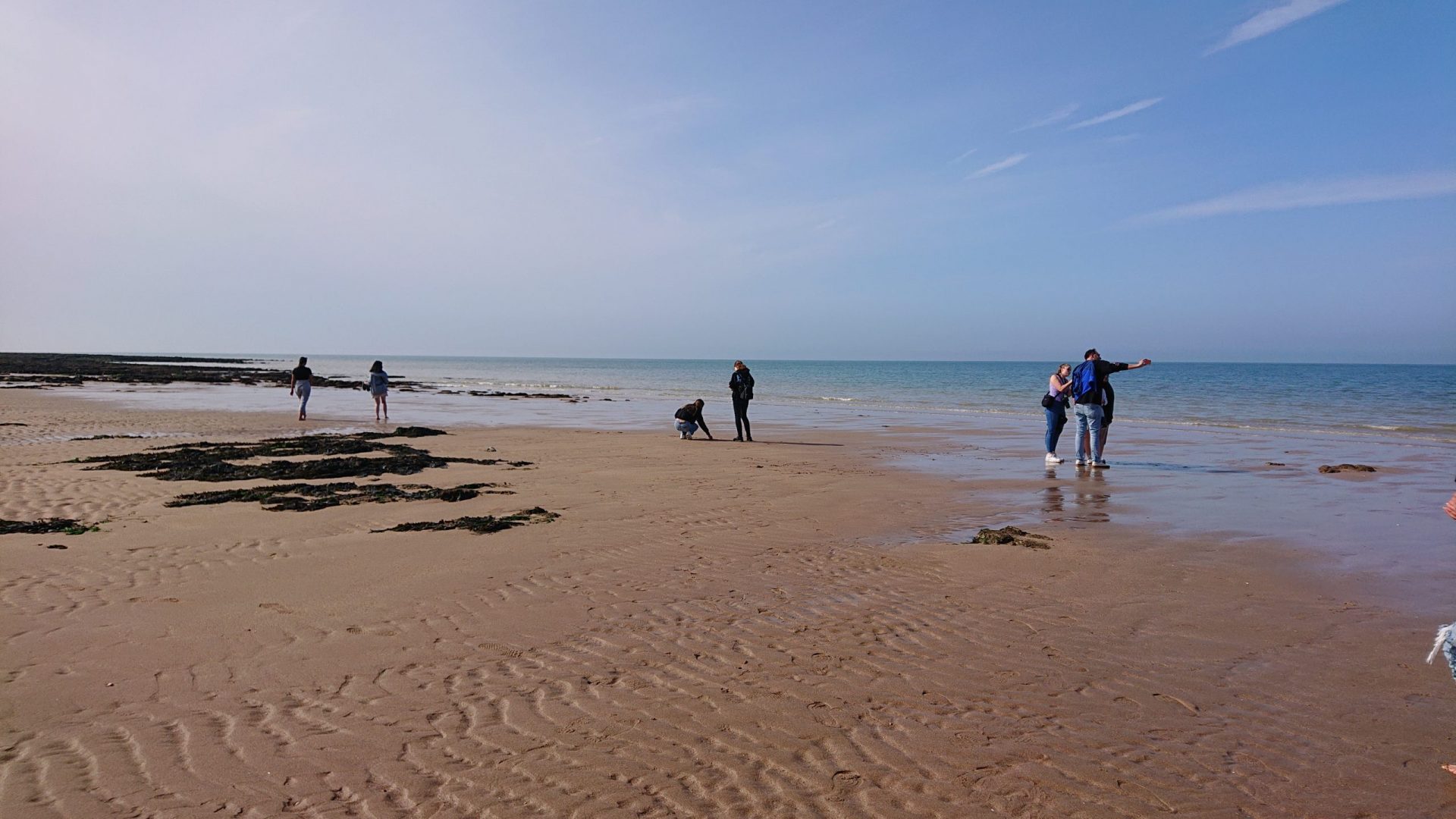 Tag 4 – Eastbourne. Endlich Zeit, die Stadt doch richtig zu erkunden. Aber zuerst doch das, was etliche Schüler als das schönste Erlebnis der Fahrt bezeichnen sollten. Der Aufenthalt in Birlling Gap. Schon 8.30 Uhr waren wir die ersten dort, niemand weit und breit außer uns. Sonnenschein, Windstille, leises Meeresrauschen. Zuerst gingen alle die Klippe hoch – und drehten sich um – und – WOW. Über der Meeresbucht erhoben sich endlose hohe weiße Kreidefelsen, die im Sonnenschein gleißend strahlten. Darüber die grüne hügelige Heide. Sensationell. Dann gingen alle über eine Treppe an den Strand, der durch die Ebbe recht breit war. Und dort genoss jeder die Zeit wie er wollte – Steine suchend, durch das Wasser watend oder einfach sinnierend. Endlich Zeit für ein Gruppenfoto vor den beeindruckenden Kreidefelsen. Doch daraus wurde nichts. Als sich alle versammelt hatten, waren die Kreidefelsen plötzlich völlig unerwartet und fast unbemerkt im schnell herannahenden Nebel verschwunden. Der reichte präzise bis zur Kante der Steilküste. Die grüne Heide war da, die Kreidefelsen und das Meer waren weg.