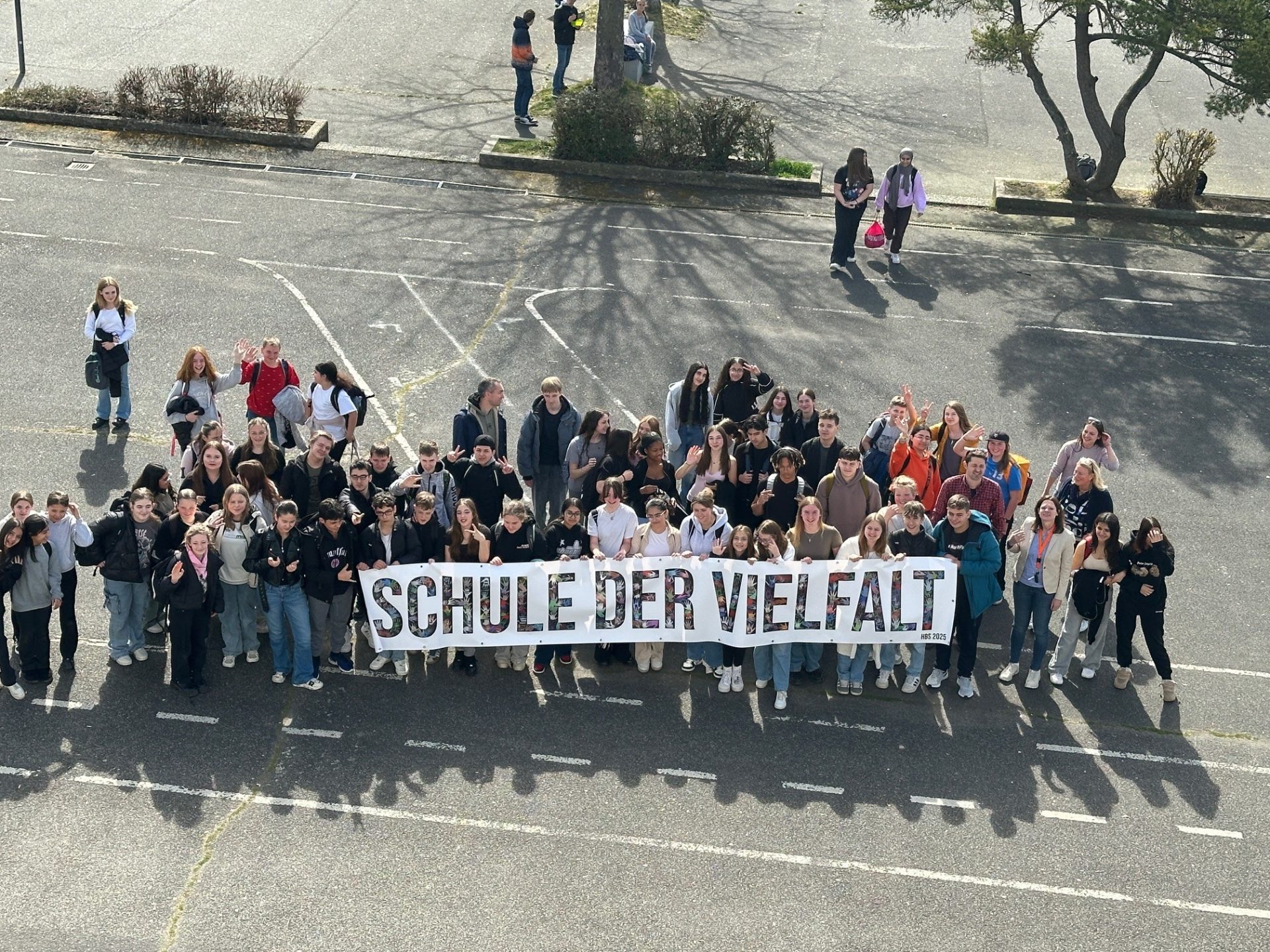 Das Projekt wurde sowohl von den Schulsozialarbeiterinnen Marion Prager und Lisa Machtanz als auch durch das Jugendreferat der Stadt Bruchköbel unterstützt. Ein weiteres Pausenprojekt wird in den diesjährigen Wochen gegen Rassismus vom 17. Bis 28. März von der Schulsozialarbeiterinnen der HBS und dem Jugendreferat durchgeführt. Mit einem Fingerabdruck auf einer Leinwand, die ein großer Baum ziert, können die Schüler der HBS die Baumkrone gestalten und damit ein Zeichen für ein buntes Miteinander setzen.