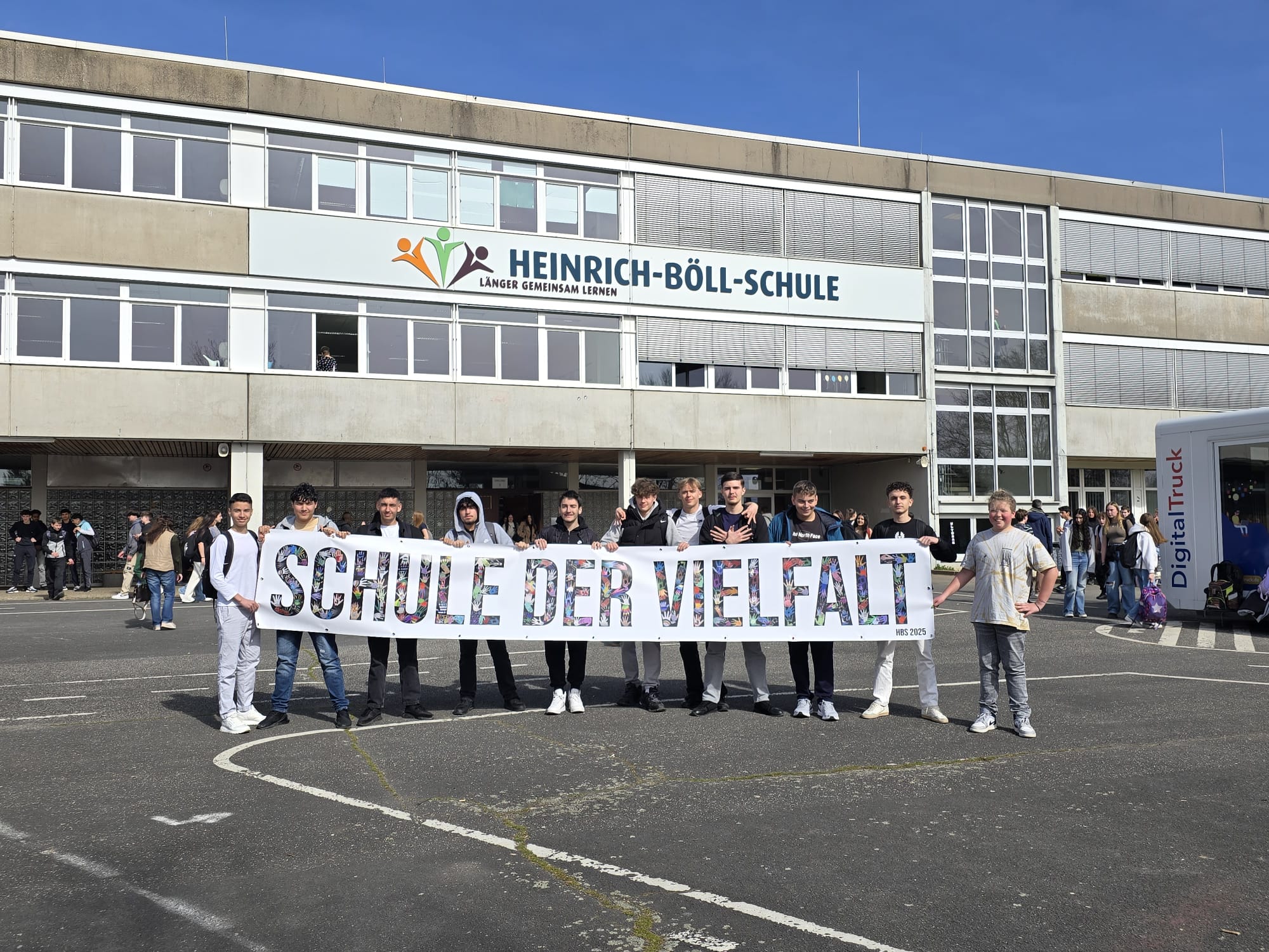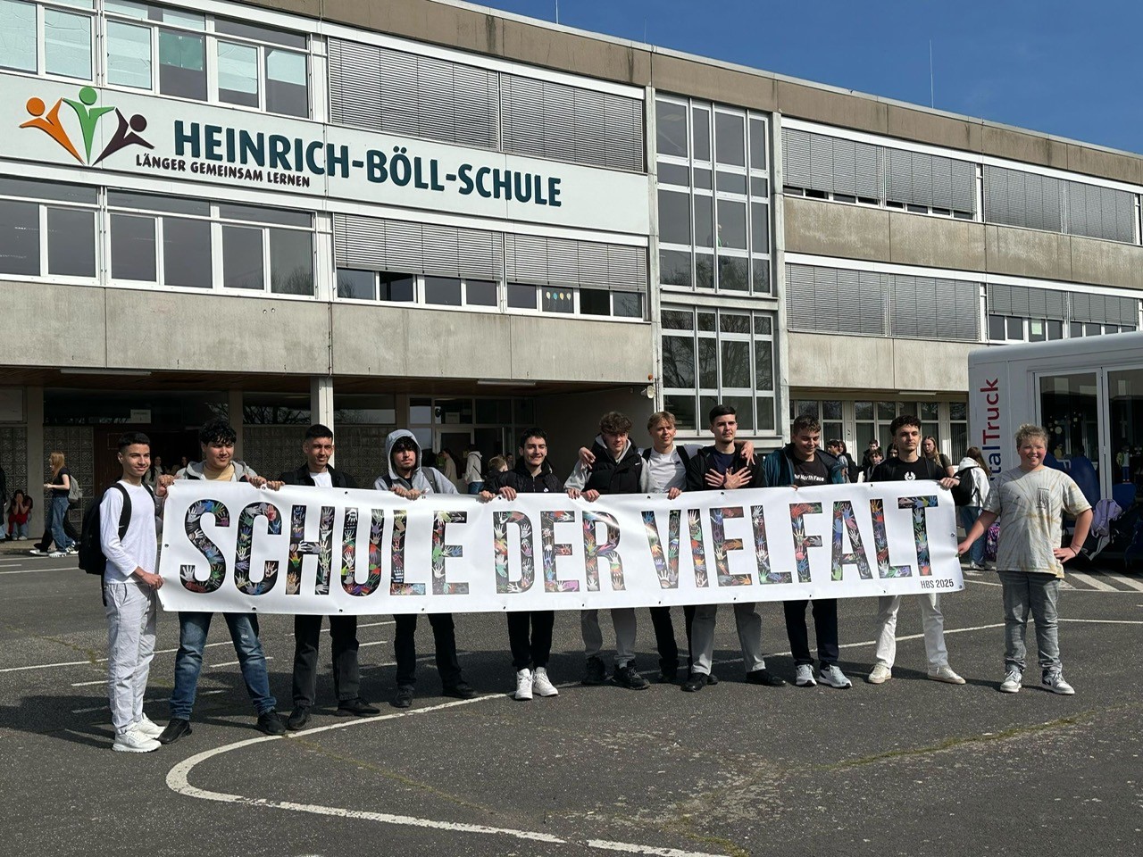 Im Rahmen der Wochen gegen Rassismus gestalteten Schüler der Heinrich-Böll-Schule (HBS) ein Banner mit ihren Handabdrücken. Im Rahmen des schulischen Kunstunterrichtes befassten sich die Schüler der Bruchköbeler Gesamtschule mit den Themen Vielfalt, Gemeinsamkeit sowie Miteinander und gestalteten ihre Handabdrücke mit ihrer eigenen Interpretation zu diesen Themen. Jeder Handabdruck erzählt seine eigene Geschichte, ist bunt oder schwarz/weiß, gestreift, einfarbig, befüllt mit einer Flagge, beschrieben oder mit Symboliken verziert.