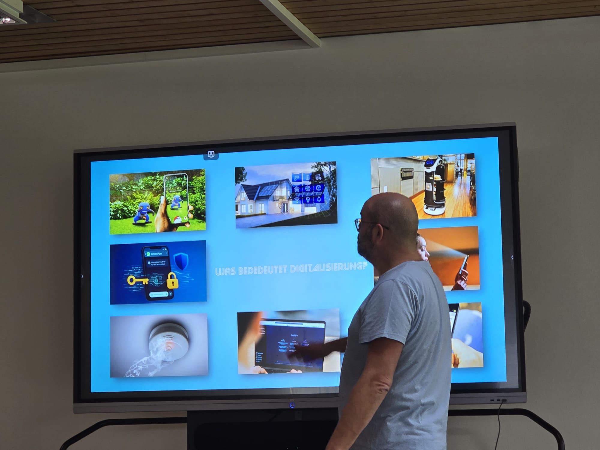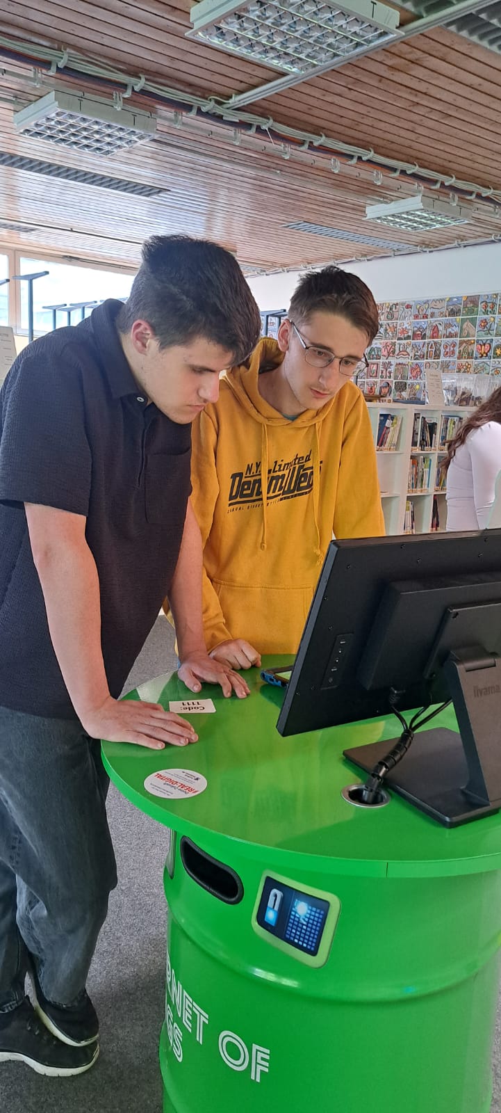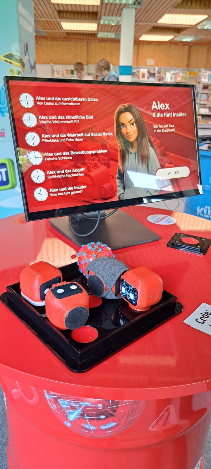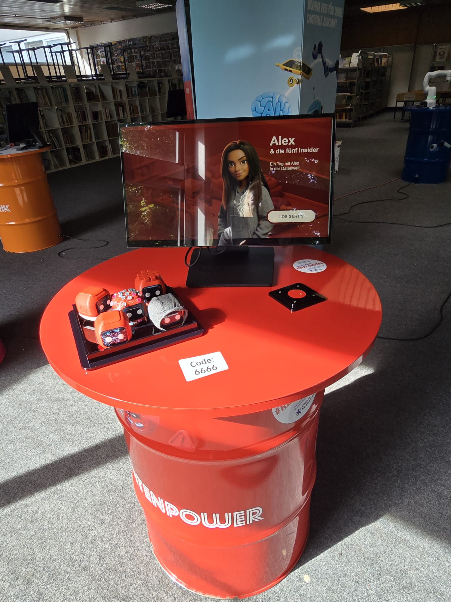 Für Schülerinnen und Schüler der Integrierten Gesamtschule bieten die Digi-Coaches Lisa Morath, Philipp Mertin und Fabio Benini einen 90-minütigen, interaktiven Rundgang an. Die Schülerinnen und Schüler erwarten insgesamt acht Stationen, die jeweils eine digitale Schlüsseltechnologie vorstellen. Dazu gehören kollaborative Robotik, das Internet der Dinge, Künstliche Intelligenz, Augmented Reality, Sensorik, Verschlüsselung, 3D-Scan sowie Big Data. Aufgeteilt in Kleingruppen lösen die Schülerinnen und Schüler an drei dieser Stationen jeweils eine spielerisch gestaltete Aufgabe und lernen dabei die Funktionsweise der vorgestellten Technologie und wie diese in unterschiedlichen Berufsfeldern eingesetzt wird. Informationen dazu erhalten sie im Sinne des Lernens mit digitalen Medien über eine interaktive Lernsoftware auf einem Tablet.