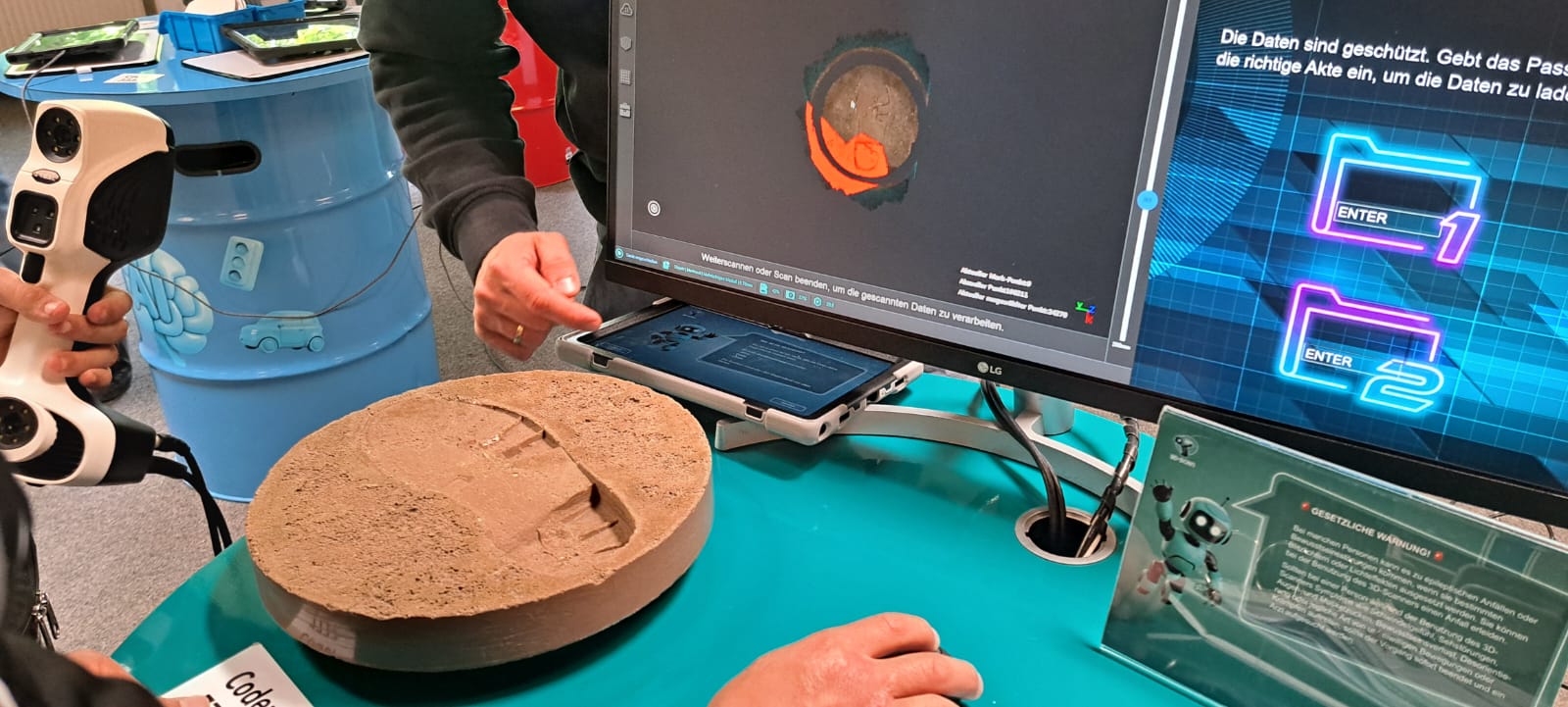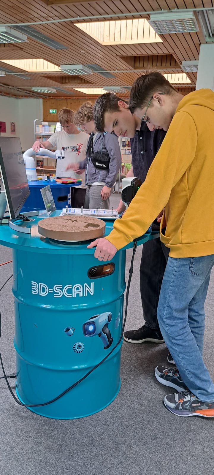 Beispielsweise erstellen sie mit einem 3D-Scanner digitale Modelle von realen Objekten, wie es in der Industrie bereits üblich ist, um diese mittels 3D-Druck reproduzieren zu können. Oder sie lernen, mit großen Datenmengen umzugehen und diese etwa mit KI-Tools auszuwerten. Denn sogenannte Data Literacy, also die Fähigkeit, Datenanalysen richtig zu interpretieren wird auch in fast allen nicht-technischen Berufen immer wichtiger. Eine gemeinsame Reflexion schließt den Rundgang ab: Die Coaches zeigen in einer multimedialen Präsentation auf, wie sehr digitale Technologien die moderne Arbeitswelt prägen, und sprechen mit der Klasse auch über Chancen und Risiken der Anwendung.